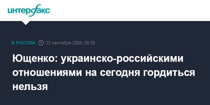 Москва. 22 сентября. INTERFAX.RU - Президент Украины Виктор Ющенко считает, что украинско-российскими отношениями на сегодняшний момент гордиться нельзя. "Они (российско-украинские отношения - ИФ) не являются такими, чтобы я гордился ими", - сказал президент, выступая в Совете внешних отношений в Нью-Йорке в понедельник. При этом Ющенко подчеркнул, что "соседи должны иметь намного лучше отношения и уметь развязывать даже унаследованные сложные вопросы".