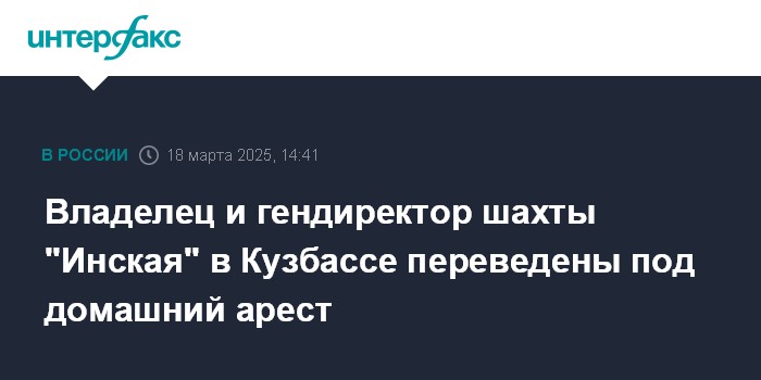 "В понедельник, 17 марта 2025 года, (...) суд изменил меру пресечения Денису Немыкину (генеральный директор шахты Инская) и Юрию Байченко (владелец шахты) с заключения под стражу на домашний арест", - говорится в сообщении.