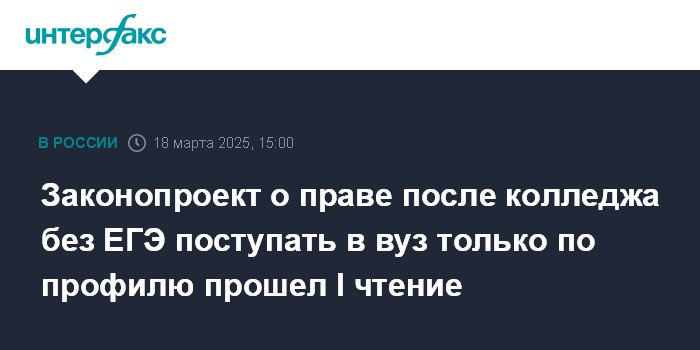 Законопроект о праве после колледжа без ЕГЭ поступать в вуз только по профилю прошел I чтение