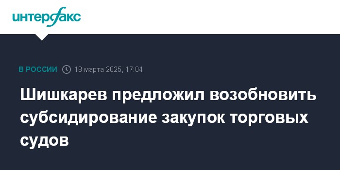 Шишкарев предложил возобновить субсидирование закупок торговых судов