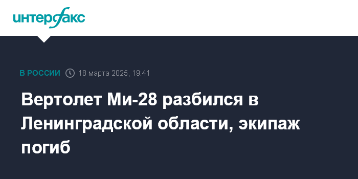 Москва. 18 марта. INTERFAX.RU - Вертолет Ми-28 потерпел катастрофу в Ленинградской области, экипаж погиб, сообщило Минобороны РФ во вторник.