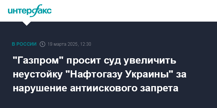 В марте 2025 года "Газпром" направил в суд заявление об увеличении судебной неустойки за нарушение антиискового запрета (суд в своем определении не приводит запрошенный размер увеличенной неустойки). Арбитражный суд Санкт-Петербурга и Ленинградской области рассмотрит это ходатайство 16 апреля.