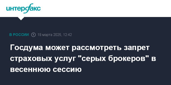Госдума может рассмотреть запрет страховых услуг "серых брокеров" в весеннюю сессию