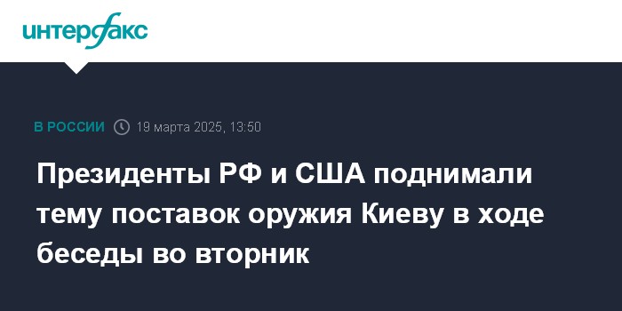 Москва. 19 марта. INTERFAX.RU - Тема поставок оружия Украине затрагивалась в ходе разговора президентов РФ и США Владимира Путина и Дональда Трампа во вторник, но её не следует обсуждать публично, заявил журналистам пресс-секретарь главы российского государства Дмитрий Песков.