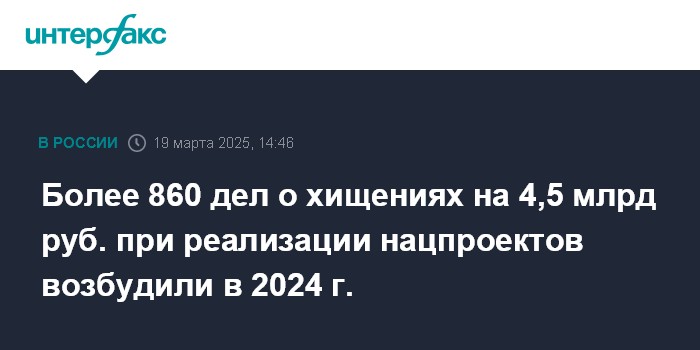 Более 860 дел о хищениях на 4,5 млрд руб. при реализации нацпроектов возбудили в 2024 г.