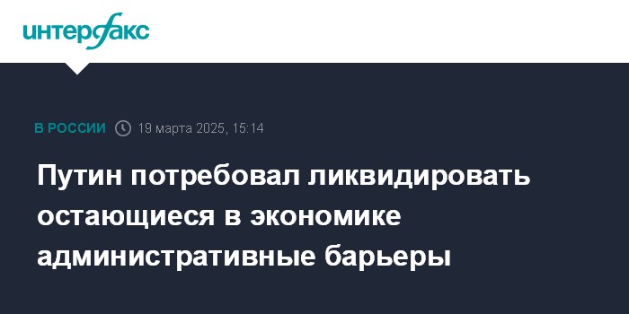 Путин потребовал ликвидировать остающиеся в экономике административные барьеры