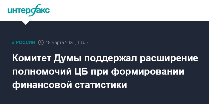 Москва. 19 марта. INTERFAX.RU - Комитет Госдумы по финансовому рынку на заседании в среду поддержал законопроект, который расширяет полномочия ЦБ в сфере формирования финансовой статистики в рамках работы Системы национальных счетов России.