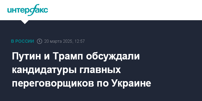 Москва. 20 марта. INTERFAX.RU - Президенты России и США Владимир Путин и Дональд Трамп 18 марта обсуждали в том числе составы делегаций на грядущих российско-американских переговорах, также эту тему обсудили 19 марта по телефону помощник Путина Юрий Ушаков и советник Трампа по нацбезопасности Майкл Уолтц.