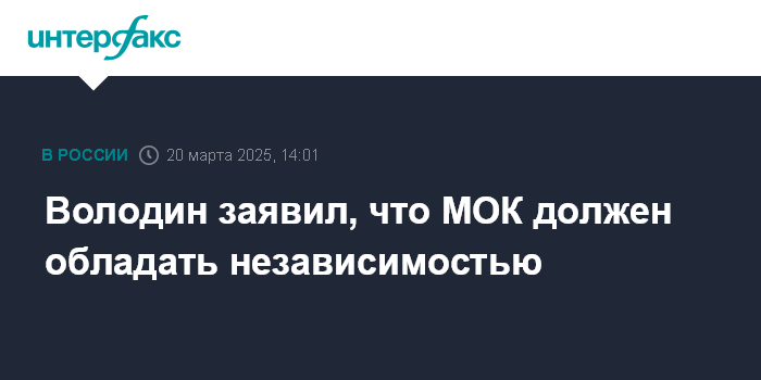 Москва. 20 марта. INTERFAX.RU - В день выборов нового президента Международного олимпийского комитета спикер Госдумы Вячеслав Володин заявил в Telegram о необходимости обеспечить независимость этого органа.