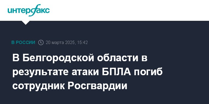 В Белгородской области в результате атаки БПЛА погиб сотрудник Росгвардии