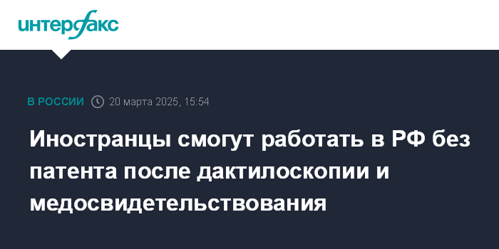 Иностранцы смогут работать в РФ без патента после дактилоскопии и медосвидетельствования
