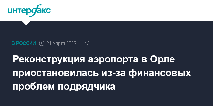 Реконструкция аэропорта в Орле приостановилась из-за финансовых проблем подрядчика