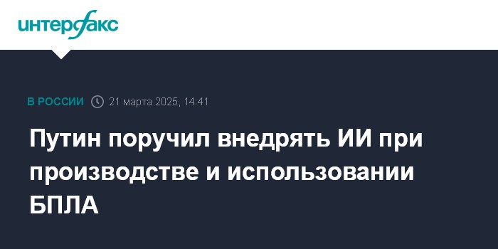 Путин поручил внедрять ИИ при производстве и использовании БПЛА