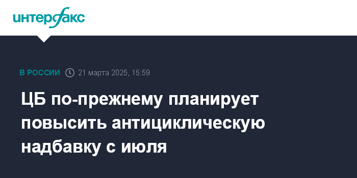 ЦБ по-прежнему планирует повысить антициклическую надбавку с июля