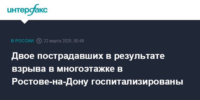 Двое пострадавших в результате взрыва в многоэтажке в Ростове-на-Дону госпитализированы