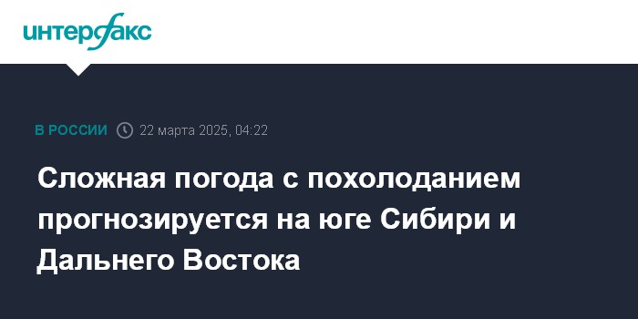 Сложная погода с похолоданием прогнозируется на юге Сибири и Дальнего Востока