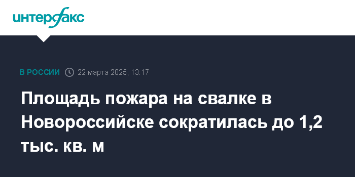 Москва. 22 марта. INTERFAX.RU - До 1,2 тыс. кв. метров сократилась площадь возгорания на мусорном полигоне на горе Щелба в Новороссийске, сообщает оперативный штаб Кубани.
