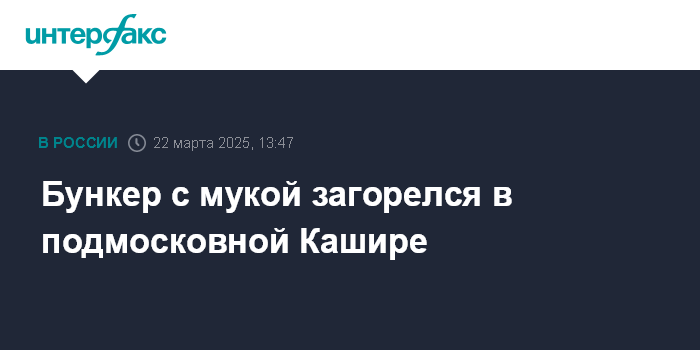 Москва. 22 марта. INTERFAX.RU - Пожарные тушат крупное возгорание в бункере с мукой в подмосковной Кашире, сообщила пресс-служба МЧС РФ в субботу.
