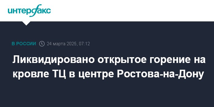 Москва. 24 марта. INTERFAX.RU - Пожарные ликвидировали открытое горение на кровле торгового центра "Галерея Астор" на проспекте Буденновском в Ростове-на-Дону, сообщает пресс-служба МЧС РФ.