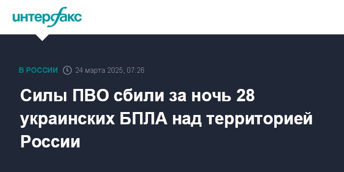Силы ПВО сбили за ночь 28 украинских БПЛА над территорией России