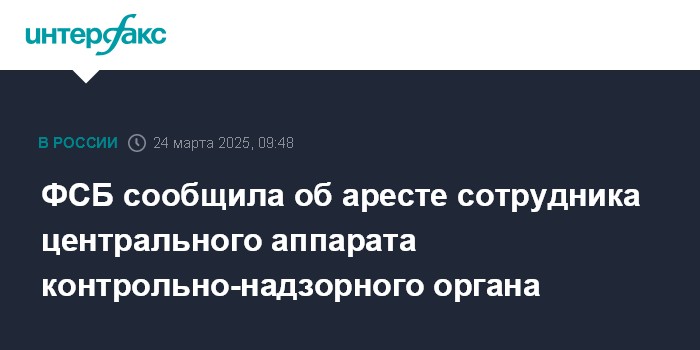 ФСБ сообщила об аресте сотрудника центрального аппарата контрольно-надзорного органа
