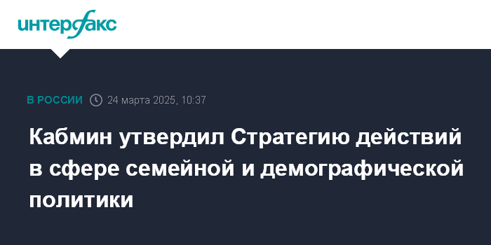 Москва. 24 марта. INTERFAX.RU - Правительство России утвердило Стратегию действий по реализации семейной и демографической политики и поддержке многодетных семей, заявил премьер-министр РФ Михаил Мишустин.