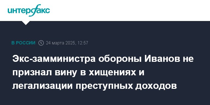 Экс-замминистра обороны Иванов не признал вину в хищениях и легализации преступных доходов