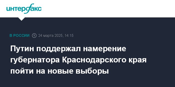 Путин поддержал намерение губернатора Краснодарского края пойти на новые выборы