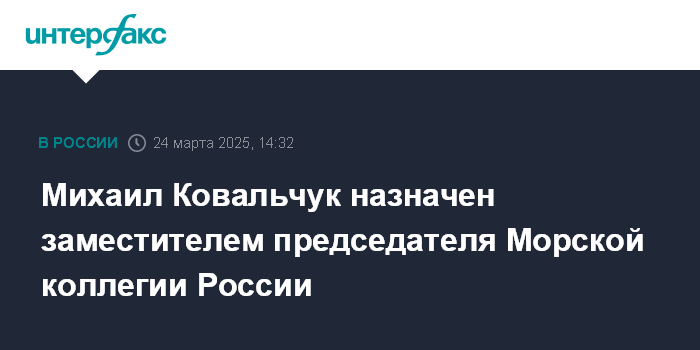 Михаил Ковальчук назначен заместителем председателя Морской коллегии России