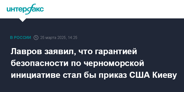 Москва. 25 марта. INTERFAX.RU - Четкими гарантиями безопасности по черноморской инициативе для Москвы стал бы прямой приказ Вашингтона Киеву, российская сторона полагает, что этот сигнал американцами был воспринят, заявил глава МИД РФ Сергей Лавров.