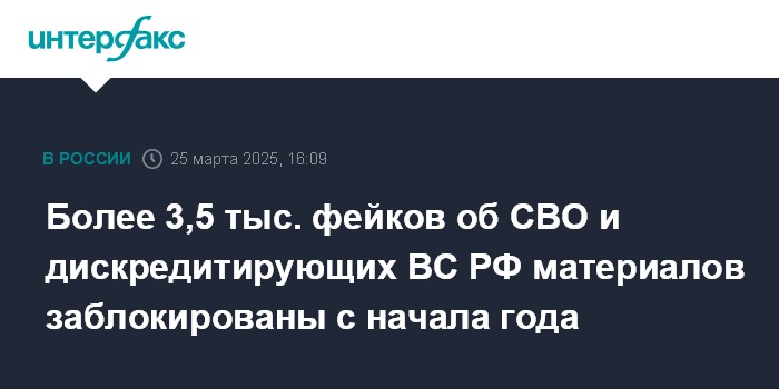 Более 3,5 тыс. фейков об СВО и дискредитирующих ВС РФ материалов заблокированы с начала года
