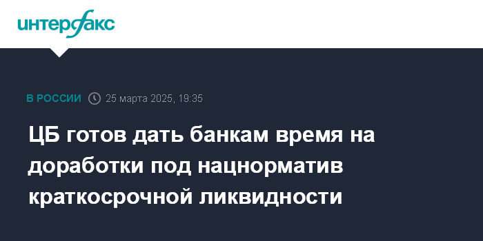 Москва. 25 марта. INTERFAX.RU - Банк Россиии банки обсуждают введение национального норматива краткосрочной ликвидности (ННКЛ) с 1 октября или в конце 2025 года, заявил журналистам директор департамента банковского регулирования и аналитики ЦБ Александр Данилов.
