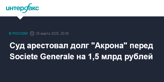 Суд арестовал долг "Акрона" перед Societe Generale на 1,5 млрд рублей