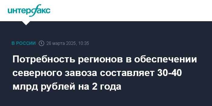 Потребность регионов в обеспечении северного завоза составляет 30-40 млрд рублей на 2 года