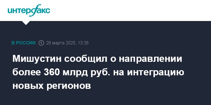 "Запустили также программу для интеграции наших новых регионов, в рамках нее направили свыше 360 млрд рублей", - сказал он, выступая в Госдуме в среду с ежегодным отчетом о работе правительства.