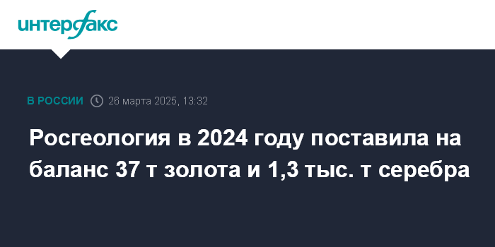 Росгеология в 2024 году поставила на баланс 37 т золота и 1,3 тыс. т серебра
