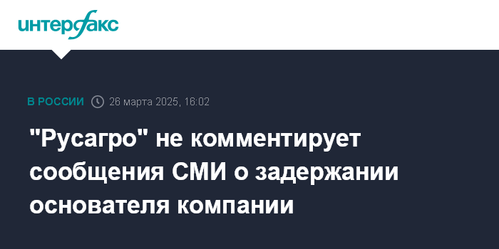 Москва. 26 марта. INTERFAX.RU - ГК "Русагро" не комментирует сообщения СМИ о задержании основателя компании Вадима Мошковича.