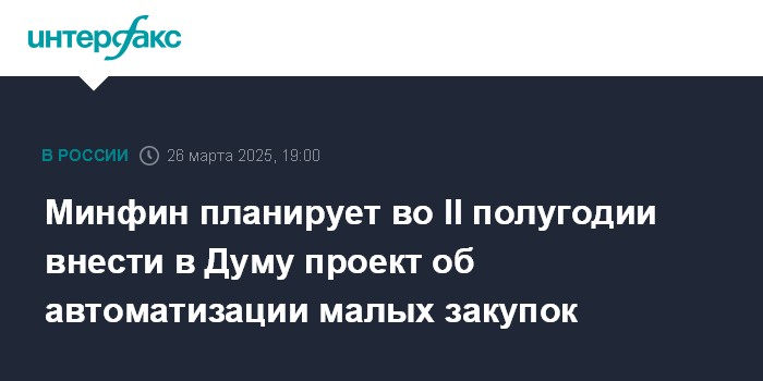Минфин планирует во II полугодии внести в Думу проект об автоматизации малых закупок