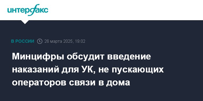 Москва. 26 марта. INTERFAX.RU - Минцифры РФ рассматривает возможность введения ответственности для управляющих компаний, которые препятствуют доступу операторов связи и интернет-провайдеров в многоквартирные дома (МКД), сообщил журналистам глава министерства Максут Шадаев.