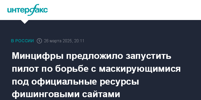 "Мы предлагаем провести с 12 мая 2025 года по 1 марта 2026 года пилотный проект, направленный на борьбу с фишинговыми сайтами, которые маскируются под официальные ресурсы и используют похожие домены, чтобы обмануть пользователей. Это позволит защитить граждан от мошеннических действий и усилит их безопасность в интернете", - сообщили "Интерфаксу" в пресс-службе Минцифры в ответ на запрос агентства.