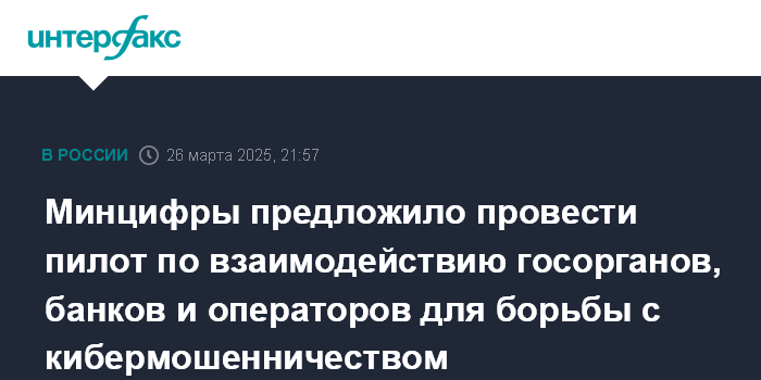 Москва. 26 марта. INTERFAX.RU - Минцифры России предлагает с середины мая провести пилотный проект по оперативному взаимодействию правоохранительных и государственных органов, банков и операторов связи для противодействия телефонным и интернет-мошенникам в рамках создания антифрод-платформы.