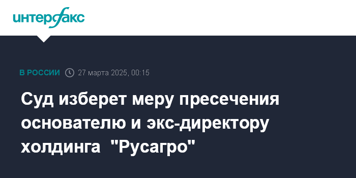 Суд изберет меру пресечения основателю и экс-директору холдинга "Русагро"