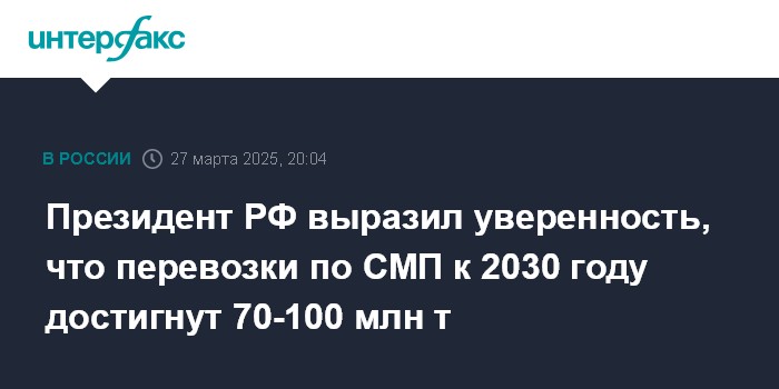 "За последние 10 лет грузопоток Северного пути от пролива Карские ворота до Берингова пролива вырос на порядок. Если в 2014 году по нему было перевезено всего 4 миллиона тонн, то есть совсем недавно, в 2014 году - 4 миллиона тонн. В прошлом - почти 38 миллионов тонн. Это в пять раз больше рекорда советского времени. Мы уверены, что к 30-му году это будет 70-100 миллионов тонн", - сказал Путин.