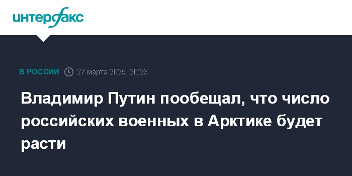 Москва. 27 марта. INTERFAX.RU - Количество российских военных в Арктике будет увеличиваться, заявил президент РФ Владимир Путин.