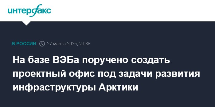 Москва. 27 марта. INTERFAX.RU - Президент России Владимир Путин предложил сформировать на базе ВЭБа проектный офис для решения задач инфраструктурного развития Арктического региона, требующих крупных инвестиций.