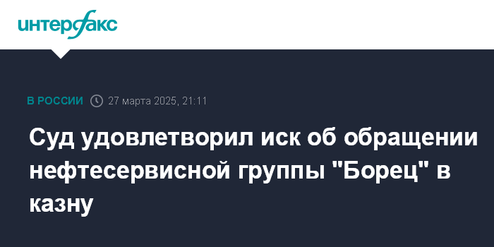 Суд удовлетворил иск об обращении нефтесервисной группы "Борец" в казну