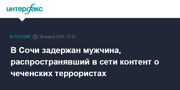 В Сочи задержан мужчина, распространявший в сети контент о чеченских террористах