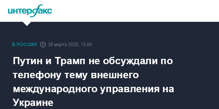 Москва. 28 марта. INTERFAX.RU - Тема введения международного внешнего управления на Украине не обсуждалась в ходе телефонных разговоров президентов РФ и США Владимира Путина и Дональда Трампа, заявил пресс-секретарь главы российского государства Дмитрий Песков.