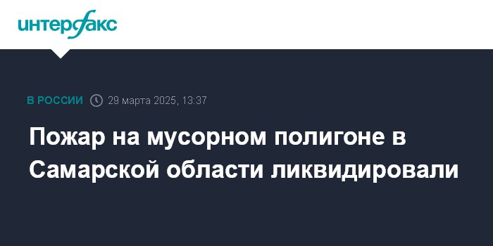 Москва. 29 марта. INTERFAX.RU - Возгорание на полигоне твердых бытовых отходов "Преображенка" в Самарской области ликвидировано, сообщается в телеграм-канале министерства природных ресурсов и экологии региона в субботу.