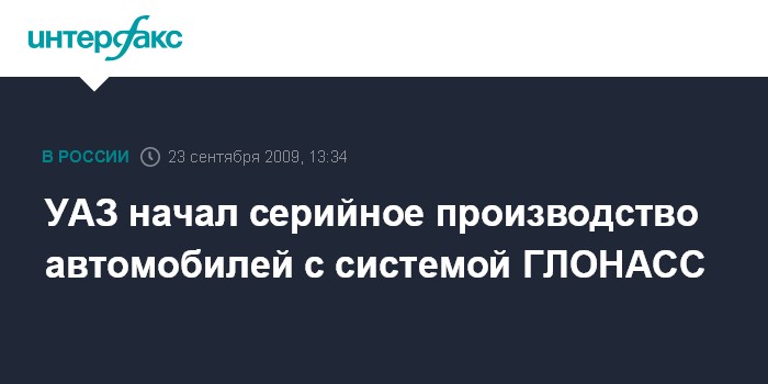 Москва. 23 сентября. INTERFAX.RU - ОАО "Ульяновский автомобильный завод" (УАЗ, входит в холдинг Sollers) изготовил первые 170 автомобилей, оборудованных системой ГЛОНАСC. Как сообщает пресс-служба предприятия, вся партия машин собрана по заказу министерства регионального развития РФ и поступит в медицинские учреждения Ульяновской области.